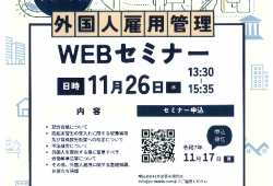 詳しくはこちら【セミナー】外国人雇用管理WEBセミナー開催のご案内(11/17申込締切)