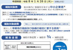 詳しくはこちら【補助金】令和7年8月豪雨に係る「熊本県中小企業者再建支援補助金」交付申請受付等の開始について