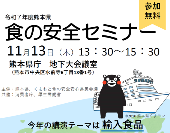 ■お申込み・詳細:HPをご覧ください。【令和7年度食の安全セミナーを開催します! – 熊本県ホームページ(外部リンク)】